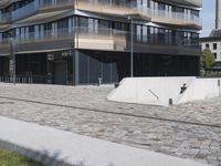 This image showcases the striking modern architecture of Berlin, Germany. The city is known for its unique urban design and innovative buildings. The photograph captures a picturesque residential area with beautiful contemporary homes. The clean lines and concrete facades give the buildings a sleek and modern look. The road surface, made of cobblestone, adds to the charm of the neighborhood. The sunny day enhances the vibrant colors and contrasts of the scene. In the background, you can see the contrails left behind by passing planes, a reminder of Berlin's status as a bustling European capital. Explore the real estate opportunities in this lively city!