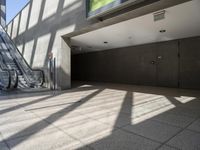 This stock photo features a modern architecture in Berlin, Germany. The image showcases an escalator walkway with a tile and glass walkway in between two buildings. The walkway is surrounded by stairs and large windows, creating a beautiful contrast of concrete and glass. The photo captures the urban vibe and city life of Berlin, with its modern design and metropolitan feel. The Potsdamer Platz, a popular shopping and business district, can be seen in the background. This image is perfect for illustrating concepts related to architecture, city life, urban design, and modern buildings.