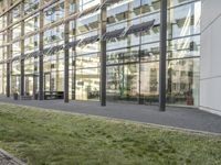 This is an image of a modern architecture building in Berlin, Germany. The building features a sleek facade made of glass walls and windows, allowing plenty of sunlight to enter the interior spaces. The mixture of residential, office, and retail spaces makes it a perfect example of mixed-use design. The building is surrounded by lush green grass and vegetation, creating a harmonious blend of nature and urban living. This photo captures the vibrant city life and the dynamic atmosphere of the business district. With its prime location in Europe, this building represents the epitome of urban design and real estate opportunities.