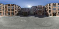A classic architecture office building in Berlin's business district. The brick wall and urban design give it a unique profile. Surrounded by vegetation, it stands as a highlight of the city's architecture.