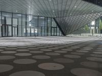 This stock photo showcases the modern architecture of Berlin, Germany's business district at night. The image features a cityscape with futuristic buildings, illuminated street lights, and a well-designed road surface. The concrete and asphalt give a contemporary look to the open space while the artificial lights create a captivating atmosphere. The photo captures the essence of the European business scene with its dark, sleek, and innovative design. This stunning image is ideal for any project related to architecture, cities, business, or Europe.