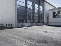 an empty building with some white windows and no one on it in front of it