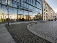 This is an image of a classic architecture building in Berlin, Germany. The building's facade is a beautiful example of the city's architectural heritage. The low road surface leads up to a plaza surrounded by cobblestone streets. The town square serves as a public space for tourists and locals alike to gather and enjoy the urban atmosphere. Against the backdrop of a clear sky, the building stands tall and majestic, showcasing the elegance of European design. This photo captures the charm and essence of Berlin's vibrant city life.