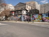 This image captures the essence of city life in Berlin, Germany. The classic architecture and urban design are prominent, with a graffiti wall adding a touch of vibrant expression to the scene. The road and asphalt signify the bustling urban environment. This photo represents a typical day in the city, where the mix of historical and modern buildings create a unique atmosphere. Explore the city streets and embrace the energy of Europe's dynamic capital.
