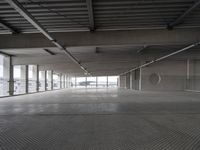 This is an image of a modern parking garage located in Berlin, Germany. The concrete structure and open space reflect the city's urban design and modern architecture. The large empty parking space is surrounded by windows and grates on the ground. This photo captures a typical day in Berlin, showcasing the city's architectural and urban features. It represents the perfect example of urban planning and design in Europe's dynamic capital, Berlin.