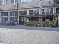 This stock photo showcases the vibrant cityscape of Berlin, Germany. The image features impressive architecture and buildings in a mixed-use neighborhood. The property is located on a road surrounded by open space and lush trees. The facade of the building, with its unique flooring and walkway, adds character to the scene. The road surface and shadow create a realistic depiction of urban life. The image also includes a door leading to a public space, with cobblestone adding to the urban aesthetic. This photo captures the essence of Berlin's urban design and highlights its status as a major European human settlement. The street view features a charming cafe, adding to the city's lively atmosphere. This stock photo is perfect for illustrating urban, real estate, and architectural concepts related to Berlin, Germany and Europe.