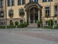 Classic European architecture in Berlin's open spaces. Cobblestone surfaces reflect the city's history. A sunny day illuminates the museum's urban surroundings.