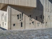 Daytime in Berlin's urban city life. A modern architecture warehouse with a cobblestone courtyard. Storage depots blend with the city's historic architecture. European urban design at its finest.