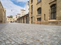 This image captures an empty cobblestone road in the city of Edinburgh, Scotland. The classic architecture of the surrounding buildings reflects the rich history of the city. The quiet neighborhood and the lack of people create a serene urban landscape. The cloudy sky adds a touch of drama to the scene. The brick walls of a nearby factory and the cobblestone surface of the road contribute to the overall charm of the area. This photo represents the unique charm and beauty of Edinburgh, a city known for its historical architecture and European atmosphere.