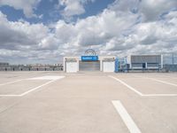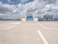 This image captures a straight road in Berlin, Germany, with modern architecture and a clear sky in the background. The concrete street leads to an open space with a parking deck or garage. The photo showcases the urban landscape of Berlin and the sleek design of the city's infrastructure. It represents a typical day in Berlin, showcasing the modern and vibrant atmosphere of the European city.