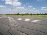 This image captures a clear blue sky with fluffy clouds overlooking an airport runway in Berlin, Germany. The open space and asphalt surface provide a perfect recreation area for people to enjoy nature. The runway, once a bustling airfield, now serves as a recreational space for locals and tourists alike. The landscape of the plain in Europe offers a peaceful retreat away from the city. This photo showcases the beauty of the park and the connecting road, highlighting the balance between urban infrastructure and natural surroundings in Berlin.