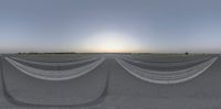 Aerial view of a Berlin road amidst urban architecture at dawn. The endless asphalt stretches under a clear sky. Modern European cityscape merges with nature as the sun rises over the high skyline.