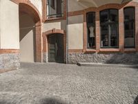 the paved streets of a european city are cobblestone bricked and bricked