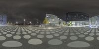 A stunning panoramic view of Berlin, Germany at dawn. The modern architecture of corporate headquarters and office buildings reflect in the calm waters, creating a mesmerizing pattern of lights and shadows. The city's vibrant urban design is showcased in the mix of straight roads, curved walkways, and circular convention centers. A futuristic glimpse into Europe's design capital.