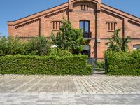 This image captures the beauty of Berlin, Germany's classic architecture. The clear sky provides the perfect backdrop for the city's iconic buildings and residential areas. The road surface is made of cobblestone, adding to the charm and history of the urban design. The facades of the houses showcase the intricate details and craftsmanship of the brickwork. The lush vegetation and green grass create a vibrant contrast against the buildings. This photo represents a typical day in Berlin, highlighting the city's rich architectural heritage and bustling city life.