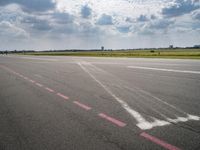 A scenic landscape in Berlin, Germany. The open grassy field is bathed in sunlight, with a clear sky and cumulus clouds on the horizon. A road and asphalt thoroughfare leads to Tempelhof Airport, a popular recreational area in Europe.