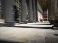A sunny day in Berlin, Germany. The Altes Museum, a classic example of historic architecture, stands tall in the city. Sunlight highlights the hardwood flooring and columns, creating a beautiful play of light and shadow. A must-visit tourist attraction in Europe.
