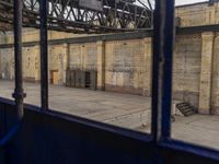 a view of the inside of a train station from the back of a bus driving by