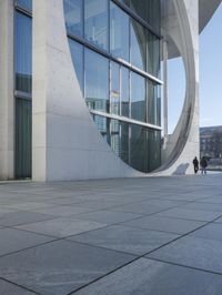 A modern architecture building in Berlin, Germany. The concrete facade is lined with glass, reflecting the blue sky and creating a sleek and urban atmosphere. The headquarters of a business district and the German Parliament in Europe.