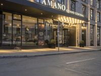 A modern mixed-use building in Berlin, Germany. The city's architecture shines at dawn with a beautiful blend of glass and light. This vibrant urban area offers a variety of cafes, office buildings, hotels, and restaurants to enjoy day and night.