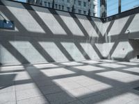 A monochrome image of Potsdamer Platz in Berlin, showcasing modern architecture and urban design. The patterned road surface with hard shadows leads to a subway station. The bustling city life with pedestrians crossing at the zebra crossing adds to the dynamic cityscape of Berlin.