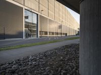 A modern architecture building in Berlin, Germany, set against the backdrop of a calm city dawn. The clean lines and concrete facade give a sense of urban design and sophistication. The empty street hints at the beginning of a bustling day of city life.