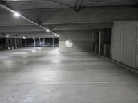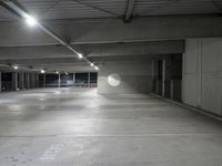 This image captures the profile of a modern architecture building in the city of Berlin, Germany. The dark, concrete street contrasts with the open space and urban design surrounding it. The street is illuminated by the night lights, creating a dramatic atmosphere. The parking deck and garage add to the architectural elements of the city. This photo represents the modern and urban landscape of Berlin in Europe.