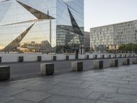 A stunning view of Berlin's modern architecture. The city's high-rise buildings create a breathtaking skyline against a clear sky. Reflective glass facades and concrete surfaces enhance the urban design of this metropolitan area.