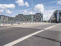 This stock photo showcases a stunning example of modern architecture in Berlin, Germany. The image features a big building situated next to a large road, with a clear sky and beautiful cityscape in the background. The streetlight illuminates the road surface made of smooth tar and asphalt. The vibrant public space is filled with the hustle and bustle of city life. The bridge spans over the thoroughfare, adding to the striking urban design of the area. The building in focus is a magnificent office building in the business district of Berlin, highlighting the city's financial importance in Europe.