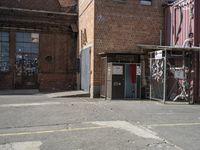 This is an image of a clear sky day in Berlin, Germany. The photo captures the urban design and city life of the residential area. The architecture includes buildings with brick and iron surfaces, as well as warehouses and factories. The image showcases the industrial and urban nature of Berlin. In the foreground, there is a courtyard with a loading dock. This photo represents the vibrant cityscape and unique blend of historical and modern elements in Berlin, making it a perfect representation of city life in Europe.