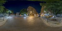 Night scene in Berlin, showcasing classic European architecture under artificial light. Dark urban streets with iconic street lights. The beauty of city life in Germany's capital.
