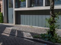 A classic Berlin residential area with cobblestone roads and modern architecture. Hard shadows create a striking contrast against the urban landscape. This European city is known for its iconic entryways and exits.