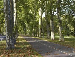 three pictures showing the same way to park and trees on one side with the same image of the other two
