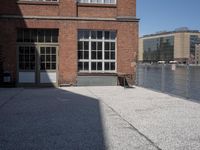 This stock photo showcases the beautiful cityscape of Berlin, Germany. The image features a modern architecture building with a clear sky in the background. The architecture exhibits classic and modern elements, adding to the charm of the city. The photo also captures the calm waters of the harbor and a pier, creating a serene atmosphere. The buildings' facades, windows, and roofs are beautifully illuminated by the sun, casting shadows on the walkway and road surface. The image perfectly represents the urban and business district of Berlin in Europe, making it an ideal choice for various design projects.