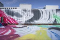 This captivating stock photo showcases the vibrant street art scene in Berlin, Germany. In a hidden courtyard, artists have transformed the walls into a colorful mural gallery, making it an art lover's paradise. The modern architecture of the surrounding buildings provides a striking backdrop for the multicolored graffiti. Brightening up the urban landscape, this art district is a must-visit for anyone interested in visual arts. The clear sky and the reflection of the street art on the asphalt road surface create a visually stunning contrast. Explore the cultural diversity and creativity of Europe's capital with this captivating image.