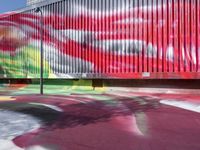A vibrant and colorful graffiti wall in the heart of Berlin's urban art district. Multicolored murals line the courtyard, representing the city's vibrant street art scene. Modern architecture and clear skies create the perfect backdrop for this energetic and artistic city.