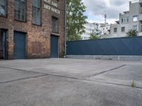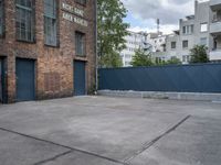 This stock photo showcases an urban basketball court located in the vibrant city of Berlin, Germany. The court is surrounded by a black fence and is set in front of a brick building and tall modern buildings, representing the mix of classic and modern architecture found in the city. The open space and asphalt surface provide an ideal setting for city life and recreational activities. This scene captures the dynamic urban design and architectural features that make Berlin a unique and lively European metropolis.