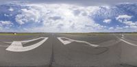 a mirror image shows an airport runway that has several arrows painted on the pavement and in the air