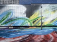 A vibrant and artistic scene in Berlin, Germany. Modern architecture lines the streets, contrasting with colorful graffiti and murals. Courtyards and art galleries showcase urban design and the city's creative spirit. A picturesque day with a clear sky.