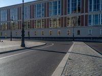 Modern architecture in Berlin, Germany, casting hard shadows on the asphalt roads. Clear skies accentuate the urban design of the city. City life thrives under the one-quarter shadow coverage, defining a typical European urban day.