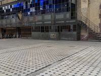 An image of Berlin's urban landscape, captured from a moving vehicle. The city's classic architecture and industrial warehouse facades create a rugged and symmetrical urban design. The patterned flooring and composite material surfaces add to the city's unique charm.