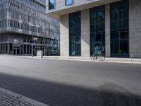 A snapshot of modern architecture in the heart of Berlin, Germany. The sleek facade and structure of the office buildings stand tall in the bustling business district. Busy roads, bicycles, and vehicles create a lively urban atmosphere.