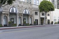 A sunny day in Beverly Hills, California, showcasing the iconic architecture of the city. Classic mansions and hotels line the streets, complemented by lush trees. Explore the residential neighborhoods and charming storefronts in this urban oasis.