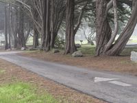 This is an image of a road winding through the scenic landscape of Big Sur, California, USA. The road is surrounded by lush forests and vegetation, with the grey sky overhead. The image captures the peaceful and natural environment of this rural area. It is a popular spot for camping and recreational activities, with many paths and lanes to explore. The road is part of the famous Pacific Coast Highway, offering stunning views of the Pacific Ocean. This photo represents the beauty and tranquility of California's state parks.