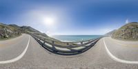 Curved road along the scenic Pacific Coast Highway in Big Sur, California. The road hugs the coastline, offering breathtaking views of the ocean, cliffs, and mountainous landscape. Clear skies and a sunny day add to the beauty of this coastal drive.