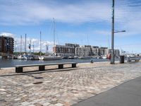 A view of the city of Bremen in Germany, with a mix of modern and classic architecture. The city is located on the horizon, overlooking a beautiful lake. Cobblestone streets and urban design create a charming atmosphere in the city.