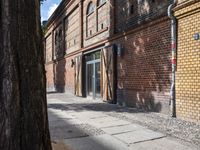 This image showcases the classic architecture of Berlin, Germany. The photo depicts a road in a historic neighborhood lined with buildings and trees. The brickwork and brick walls add a touch of urban charm to the scene. The foreground showcases the surface of the road, highlighting the texture of the city streets. This photo represents the unique blend of history and modernity found in Berlin's art district. Explore the beauty of Germany's capital city and immerse yourself in the rich European culture.