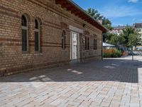This is an image of a classic brick wall in Berlin, Germany. The architecture reflects the city's urban design and the vibrant city life. The wall creates hard shadows on the alley-way and courtyard, giving a unique atmosphere to the scene. In the background, there is a clear sky contrasting with the surface of the warehouse and hotel. This photo captures the essence of Europe, with its classic architecture and museum-like appearance. Explore the hidden corners of Berlin's Hinterhof through this image.