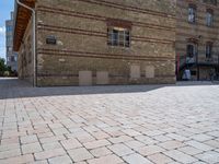 This photo showcases a classic brick wall in Berlin, Germany. The clear sky above reflects a bright day in the city. The brick surface represents the city's rich architectural history and urban design. The wall is located in a courtyard surrounded by buildings, including a hotel and a museum. The Hinterhof, or the backyards of the buildings, can be seen in the background. The photo captures the essence of city life in Berlin, with its combination of classic architecture and modern urban elements.