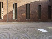 Classic architecture in Berlin, Germany. Brick walls with windows and concrete patio below. Street signs on brick walls near the building. A perfect blend of industrial and urban charm in Europe.